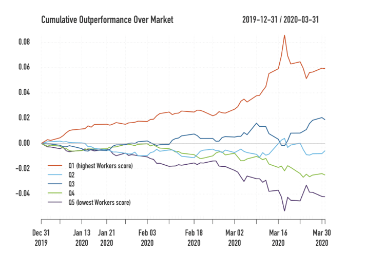 We consider it important that companies take every reasonable measure to support their workers during this exceptional situation. Such an approach can have positive and profound short- and long-term financial consequences. Research by Just Capital has shown6 that among large US-based companies, those that have delivered more support to workers have outperformed their peers during the crisis.