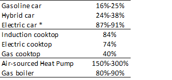 Exhibit 5 compares energy efficiency of electric and fossil fuel pathways for several products and equipment. The data is at the point of consumption and does not factor in losses and inefficiencies (such as power losses in the grid or energy consumption of converting crude oil into refined products).